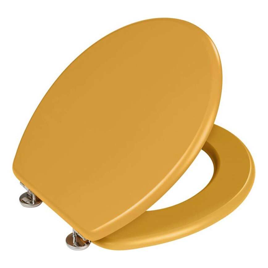 • Stilīgs tualetes sēdeklis ar retro dizainu matētā sinepju dzeltenajā tonī.