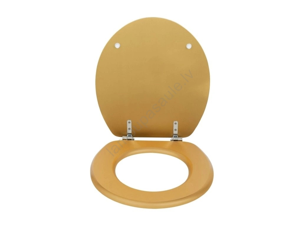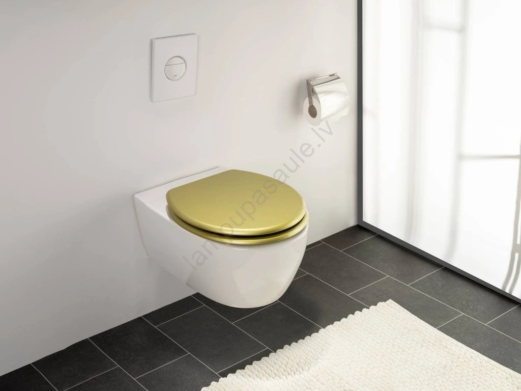 • Matēta zelta krāsas WC sēdeklis piešķir vannas istabai greznu izskatu.
