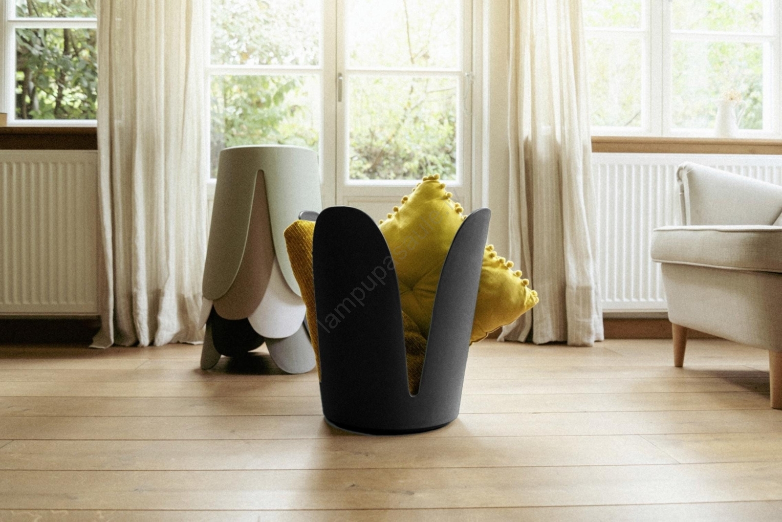 • Apgriežot, tas kalpo kā praktisks uzglabāšanas grozs segām vai žurnāliem.