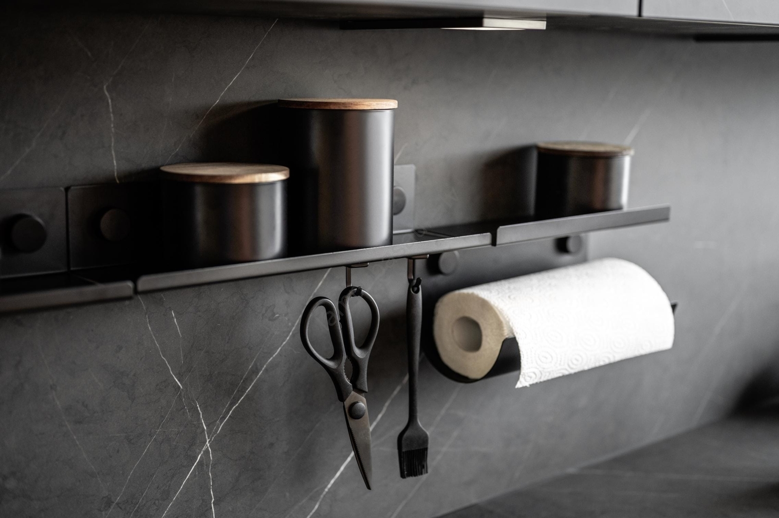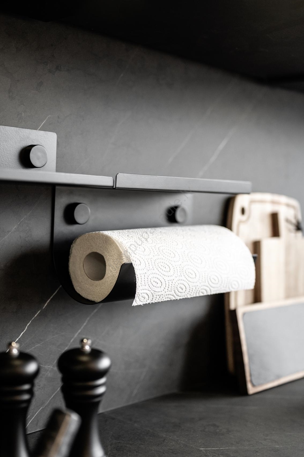 • Elegants virtuves papīra ruļļu turētājs no WENKO Jet sērijas ar mūsdienīgu melnu dizainu.