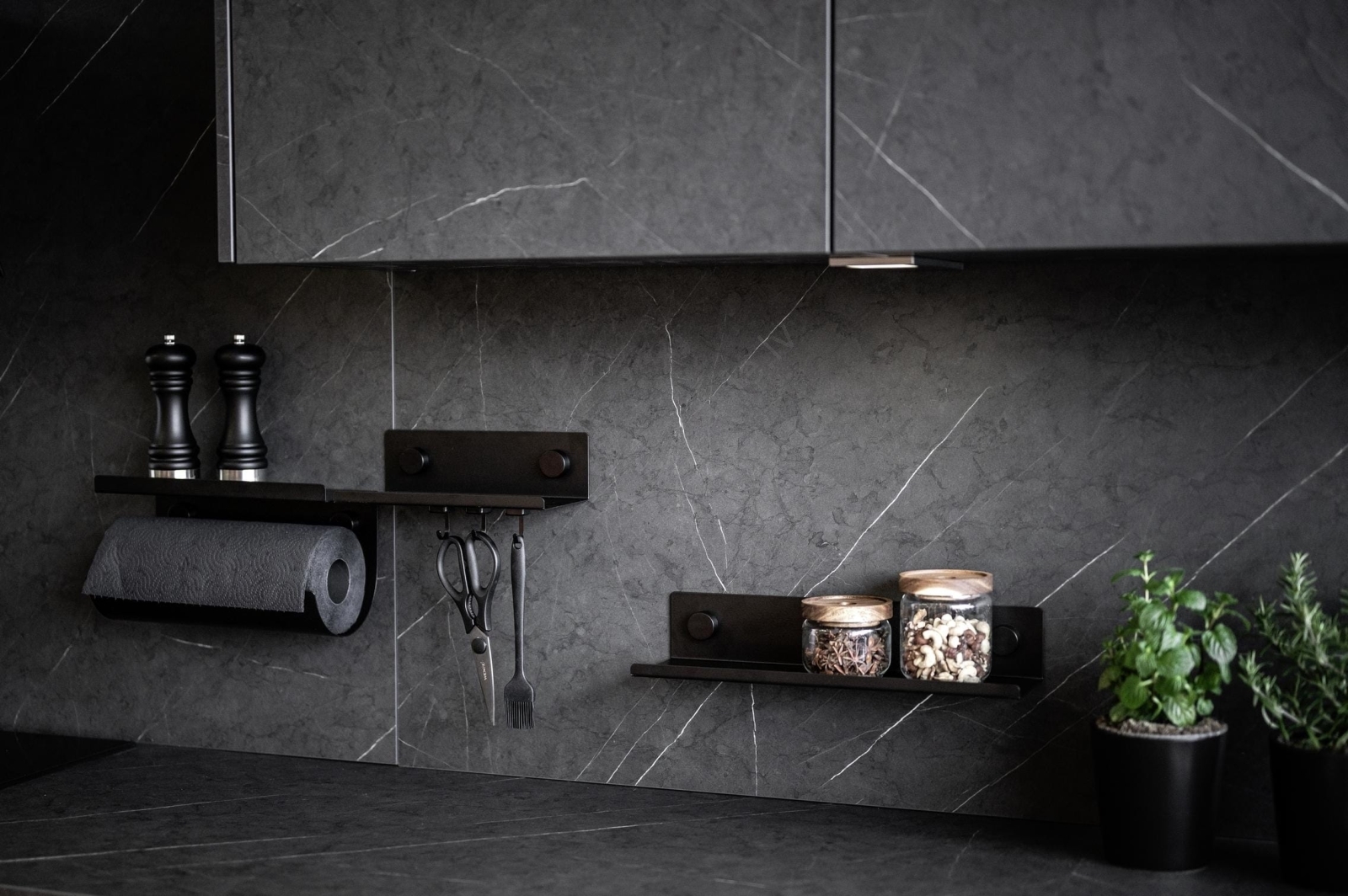 • Melnais dizains iederas mūsdienīgā industriālā virtuves stilā.