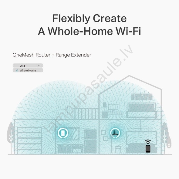 • Saderīgs ar EasyMesh - elastīgi izveido Mesh tīklu, pievienojoties EasyMesh saderīgam maršrutētājam, lai nodrošinātu nevainojamu pārklājumu visā mājā.