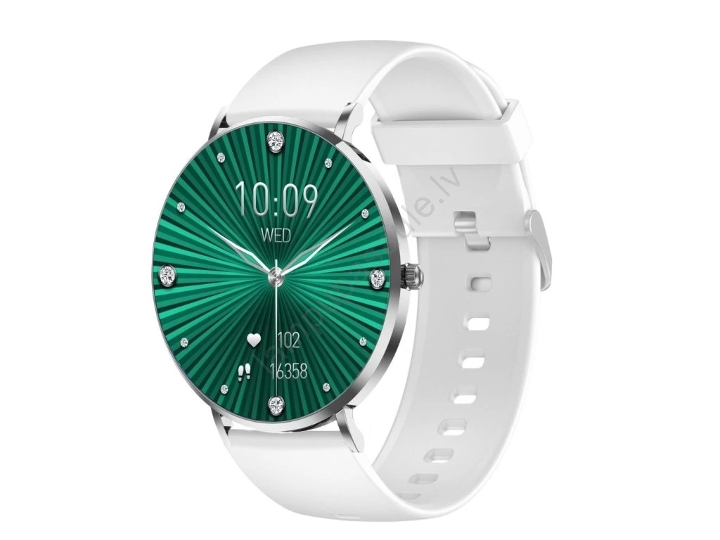 • Siksniņas: 1x silikona balta, 1x nerūsējošā tērauda sudraba.
