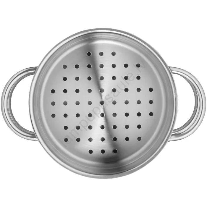 • Apakšējais katls, tvaika ieklājs (grozs/siets) un nerūsējošā tērauda vāks.