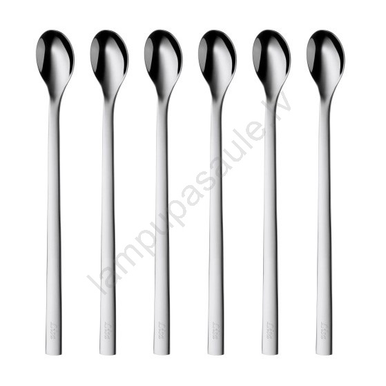 • Elegants ekstra garu tējkarotīšu komplekts — satur 6 karotītes, ideāli piemērotas augstām glāzēm un longdrinkiem.
