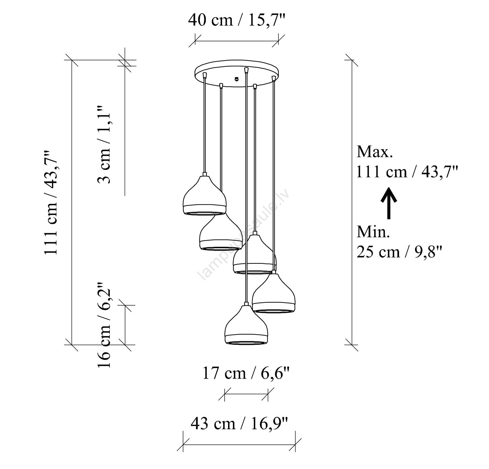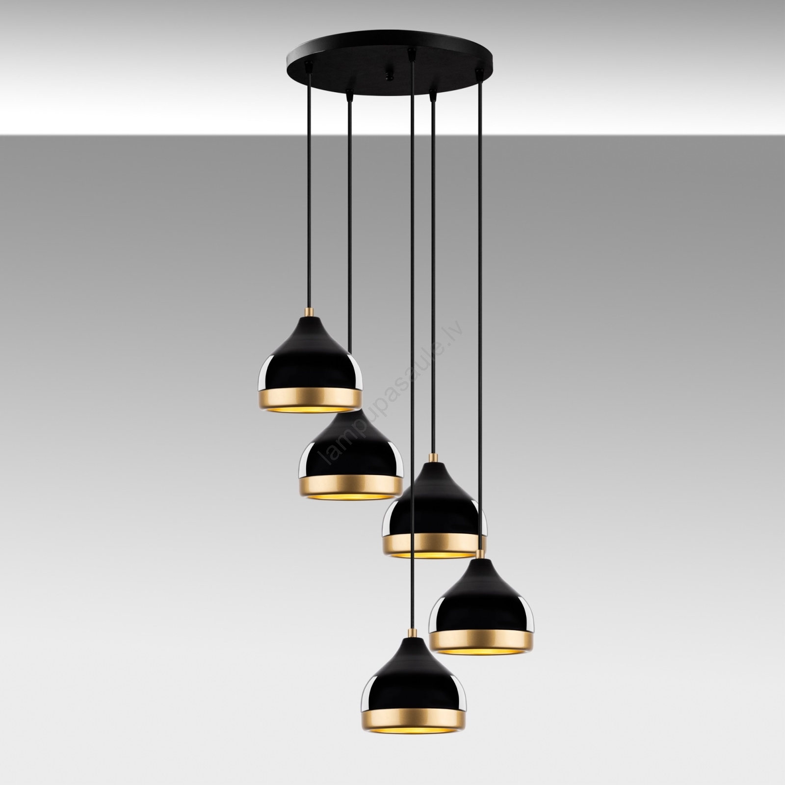 Piekaramā lustra YILDO ar kabeli 5xE27/40W/230V melna/zelta | Lampupasaule