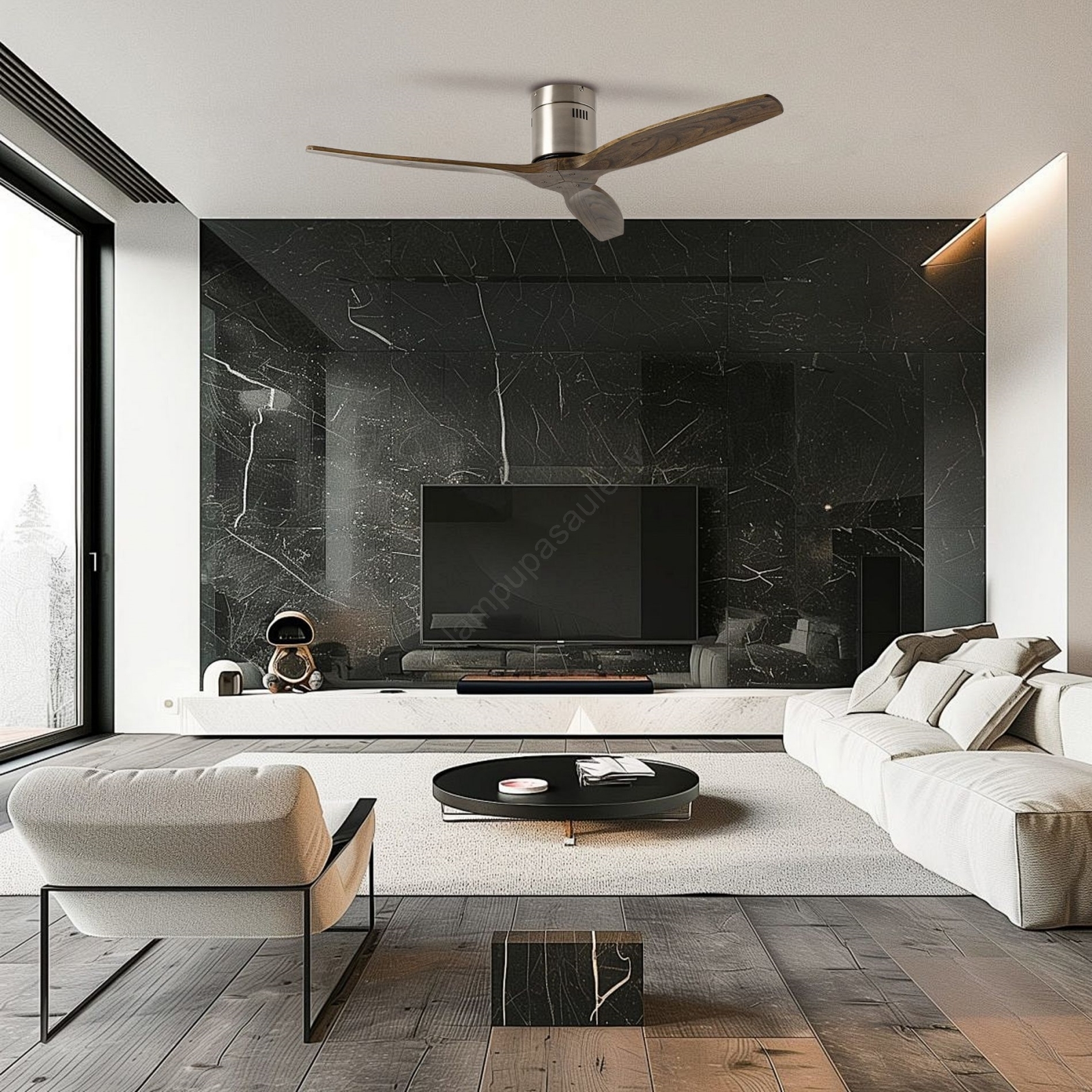 ZEVENTI - griestu ventilators SPELLO Wi‑Fi Tuya hroms/ozols + ar tālvadības pulti | Lampupasaule