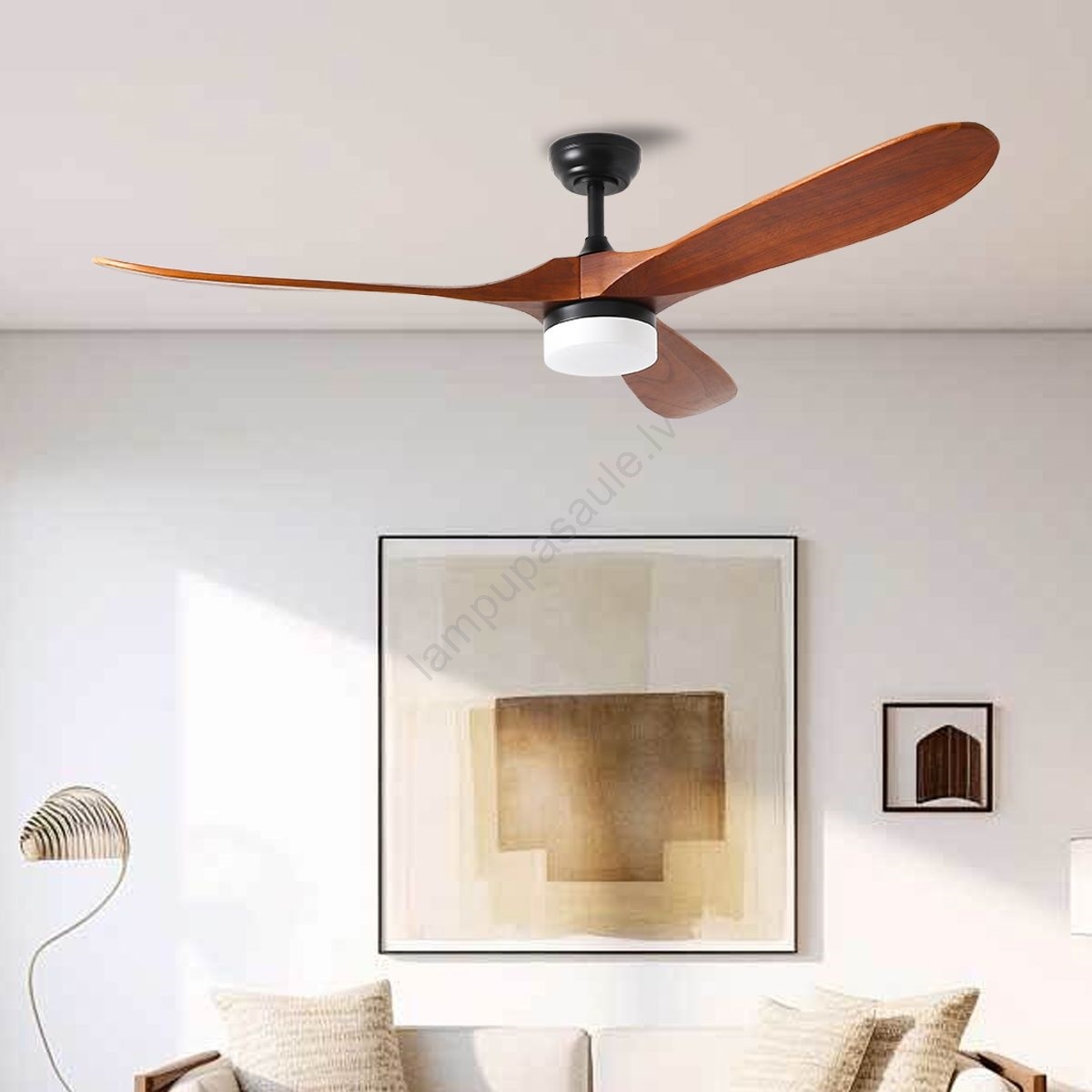 • Griestu ventilators ar LED apgaismojumu atsvaidzina telpu karstās vasaras dienās.