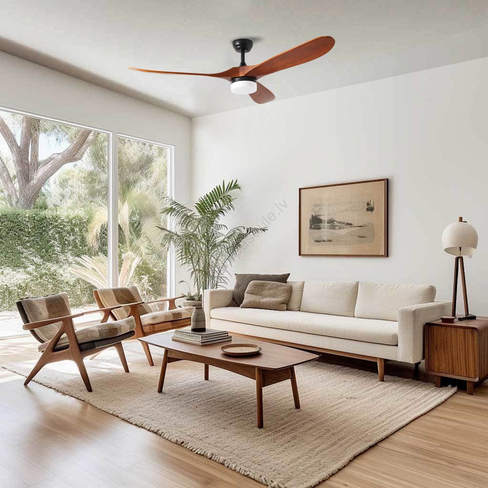 • Griestu ventilators ar LED apgaismojumu atsvaidzina telpu karstās vasaras dienās.
