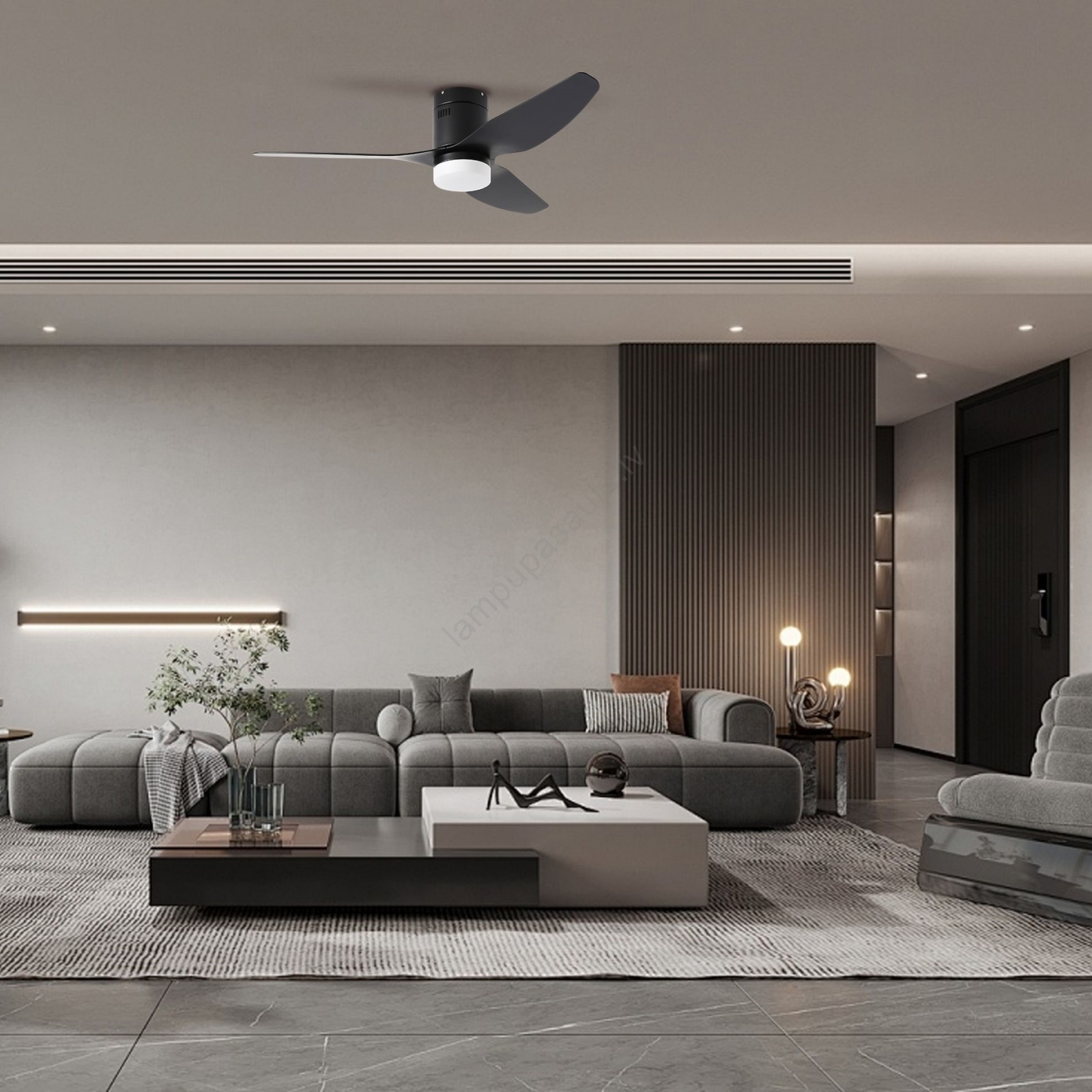 • Griestu ventilators ar LED apgaismojumu atsvaidzinās telpu karstās vasaras dienās.