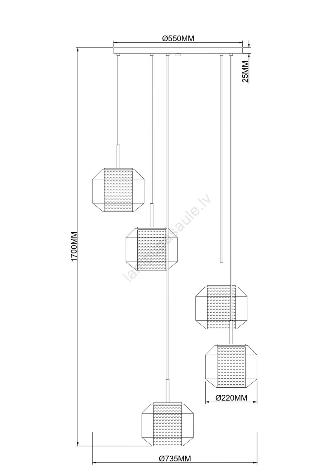 Zuma Line - Lustra uz troses 5xE27/25W/230V diam. 73 cm zelta/melna izceļas ar jauku un funkcionālu dizainu.  Spuldze ar E27 cokolu irpiemērota lampai. Šeit, varat iegādāties citas spuldzes par izdevīgām cenām. Tā būs interesants jūsu mājas papildinājums.