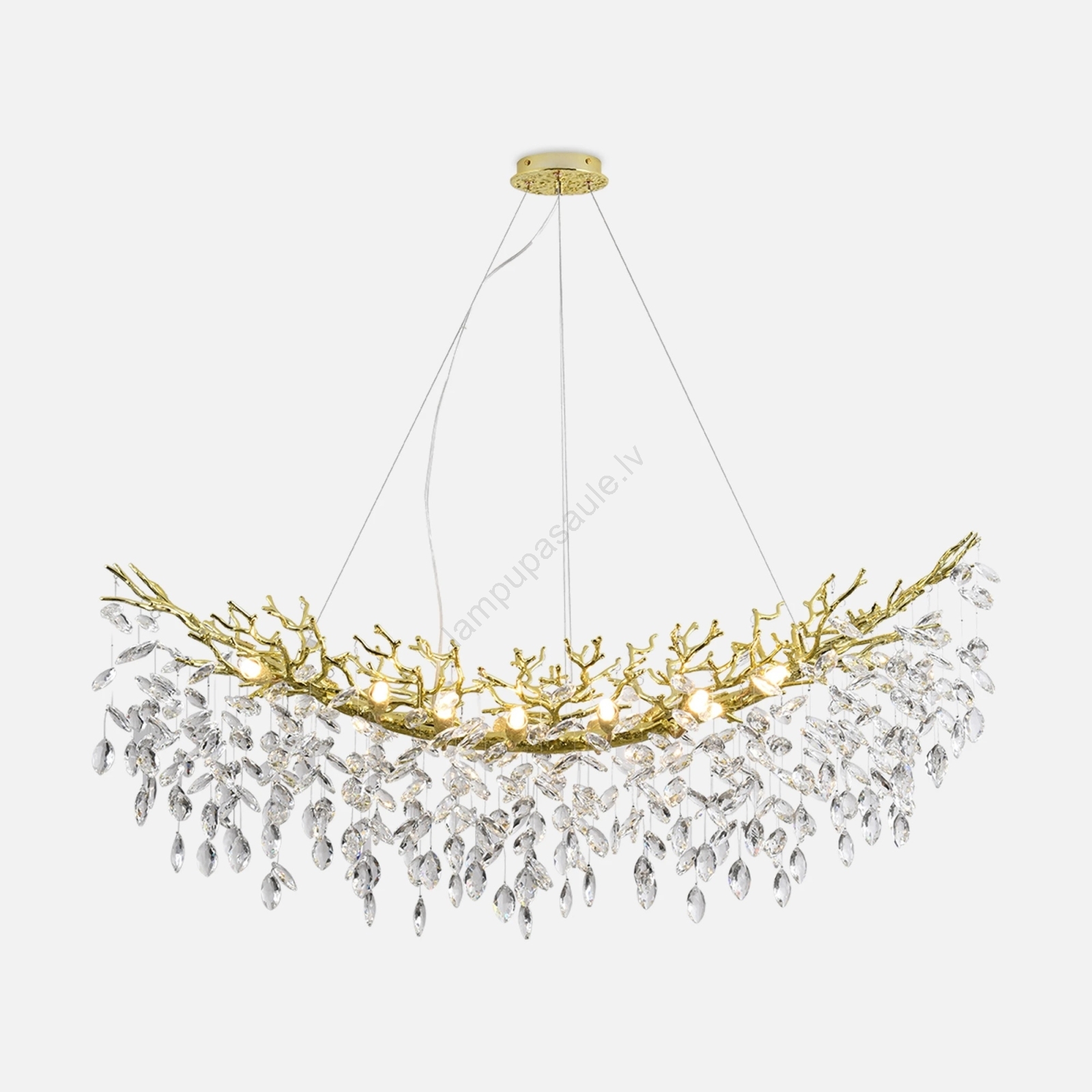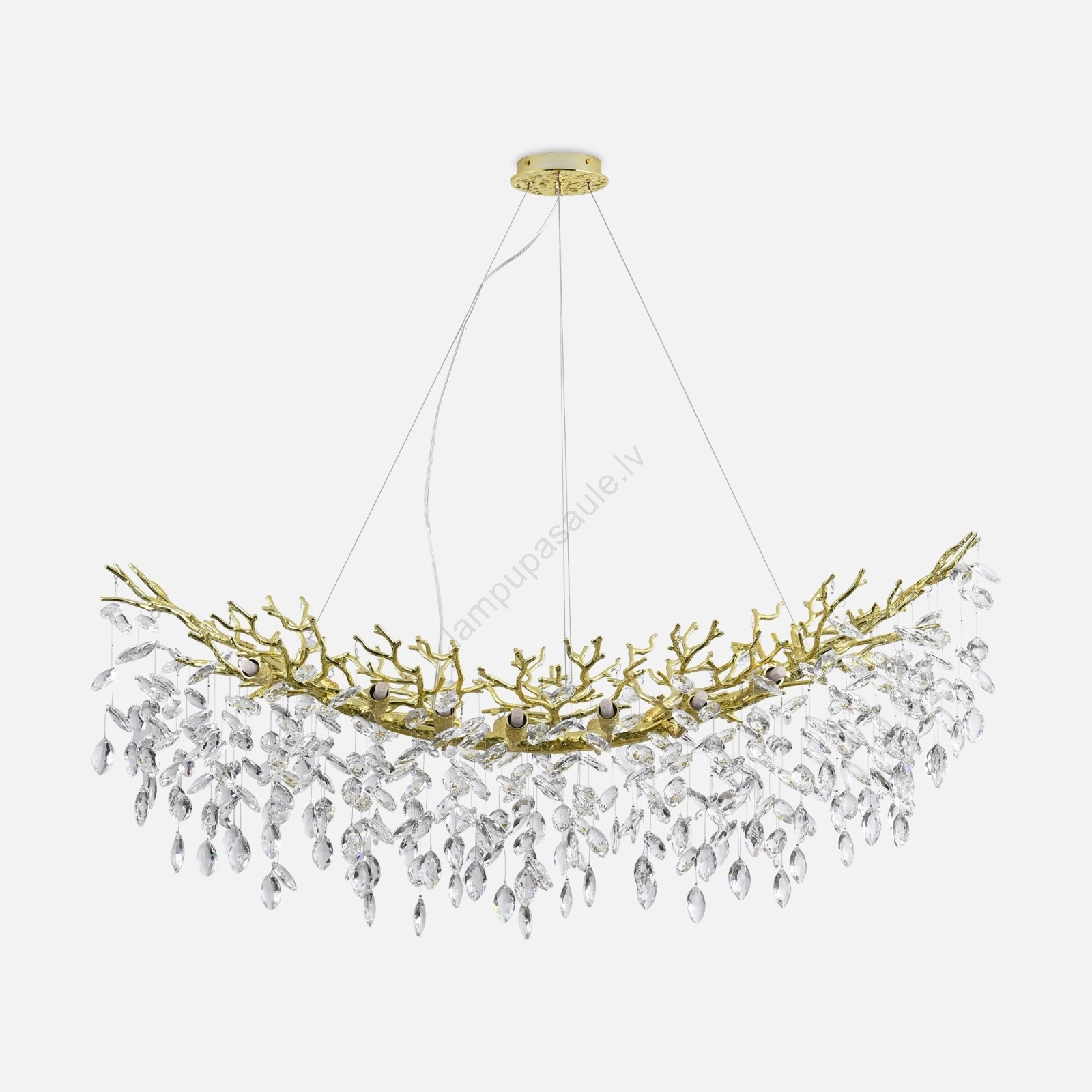 Šī kristāla lustra tiek piegādāta izjauktā veidā. Kristālu pielikšana un piekarināšana jāveic pašiem.
