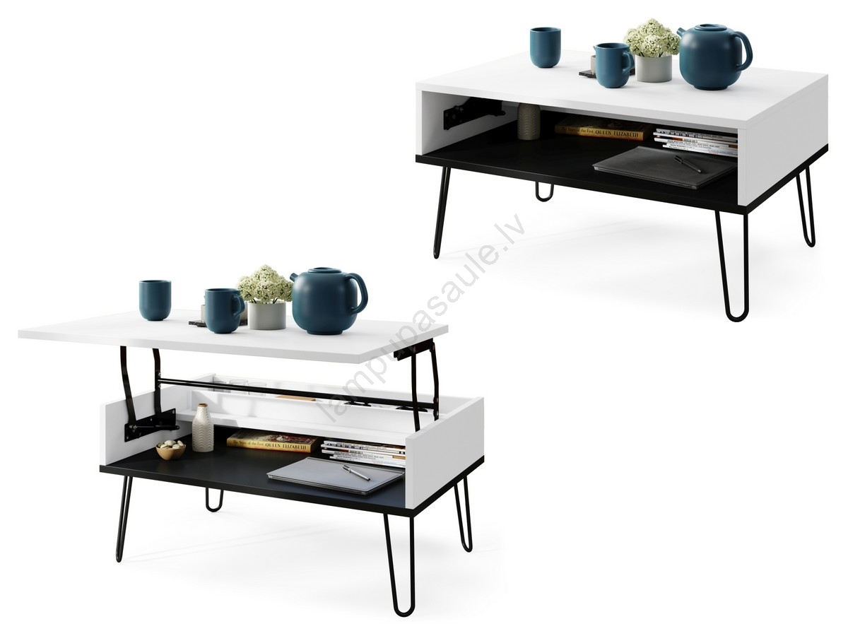 Kafijas galdiņš ar paceļamu virsmu un plauktu HALIJA, balts/melns | Lampupasaule